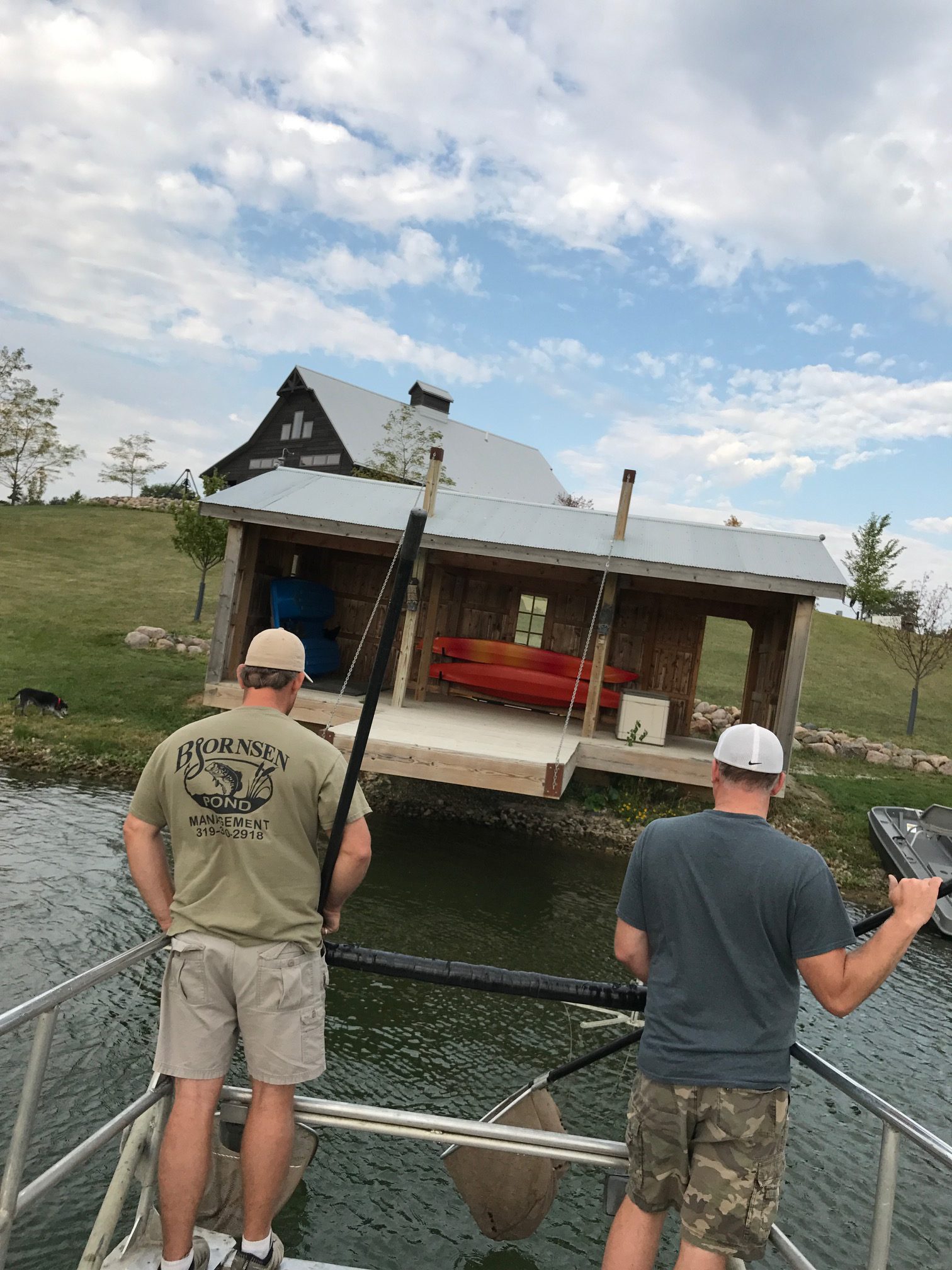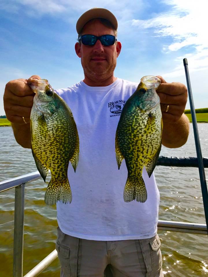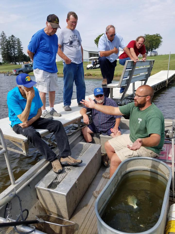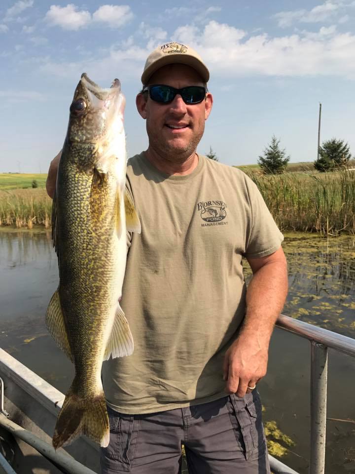 Last week we traveled all over the state of Iowa electrofishing 20 ponds at 18 locations—providing full pond audits to each Bjornsen Pond Management client. Electrofishing temporarily stuns fish with electrical current allowing them to be netted—just long enough for our team to take a census. Electrofishing does not harm the fish—desirable fish are returned to the pond. A Bjornsen Pond Management pond audit includes a custom plan to grow a great fishery, a pond vegetation control plan, and a pond improvement plan outlining recreational features, water quality and maintenance.