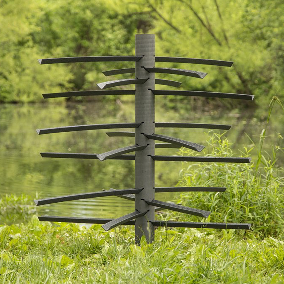 The open spacing of the MossBack Fish Habitat Trophy Tree (one 40-in. scuffed PVC trunk, nine 46-in. flexible and textured composite limbs) provides plenty of undetected space for sport fish to hide and ambush prey. The Trophy Tree is most effective when strategically placed in deeper water (5-ft. or more) near a Root Wad or Safe Haven as these two create the perfect combination of attraction and protection giving you a simple, yet extremely effective habitat setup to catch more fish! Adjustable limbs allow horizontal application of this product, giving you a complete habitat system.